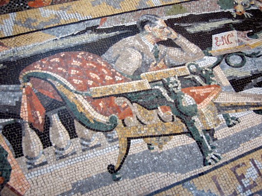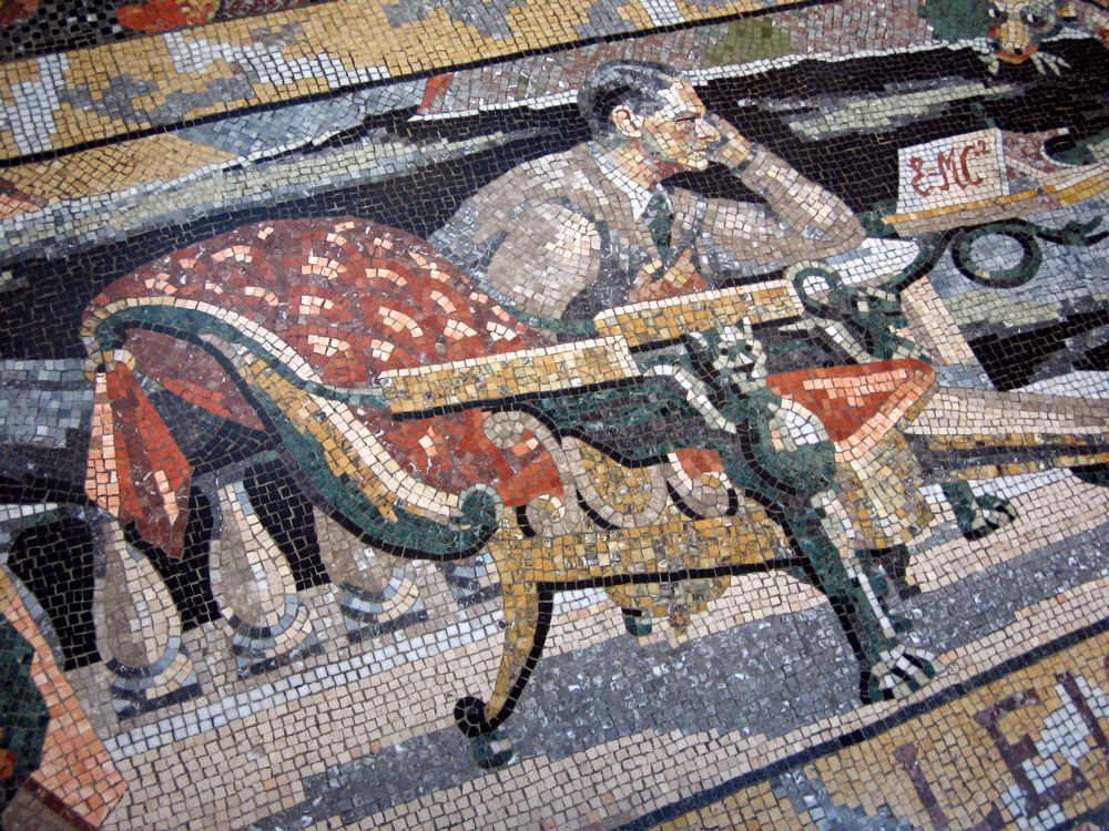 Boris Anrep – Floor Mosaic from National Gallery of Art in London: a portrait of T.S. Eliot as “Leisure”, studying the Theory of Relativity.