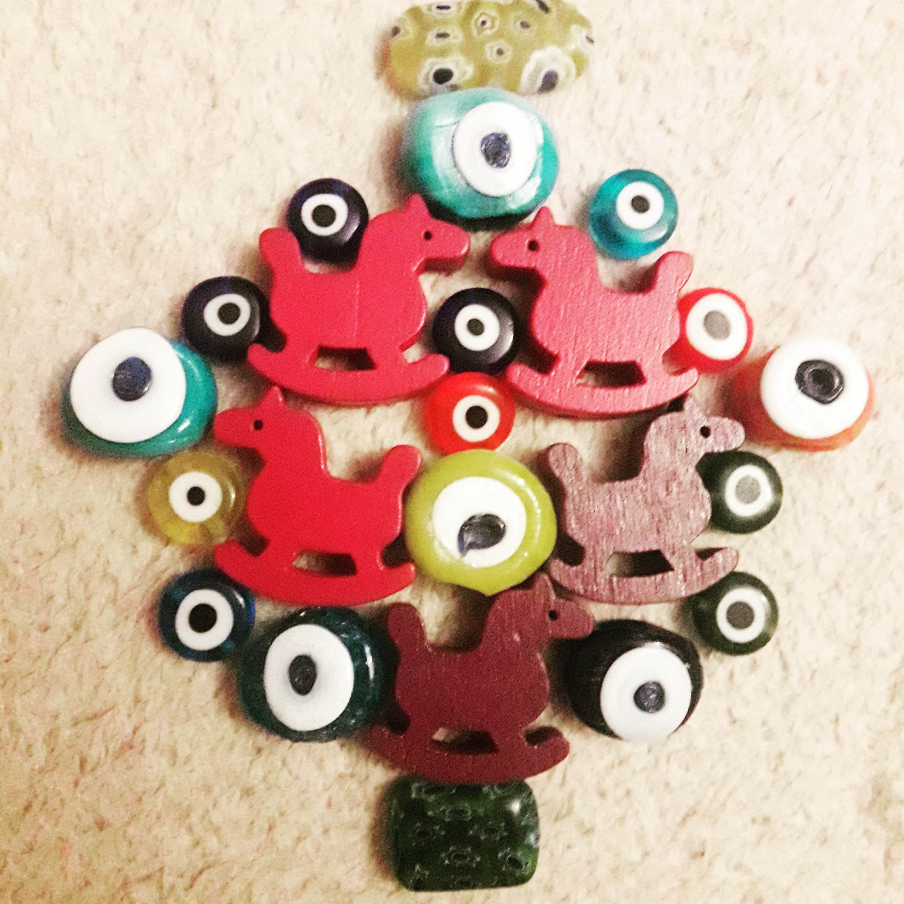 Mozaik kolye uçlarında kullanmak amacıyla çok şeker tahta boncuklar ve nazar boncukları hazırladım:)