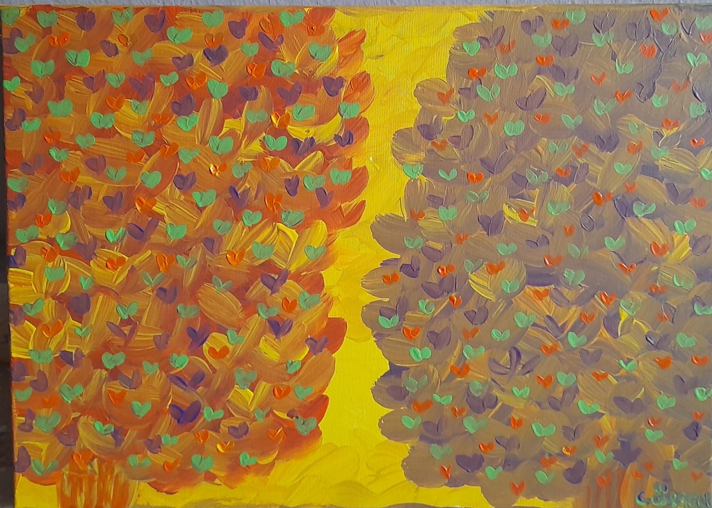 It was worth watching as two trees emerged, blocking the sun and trying to cover the distance with their leaves.
