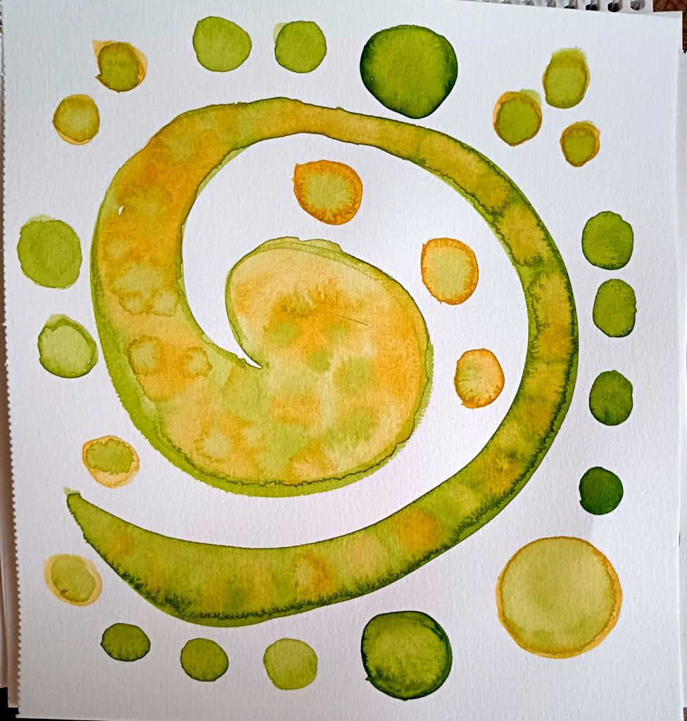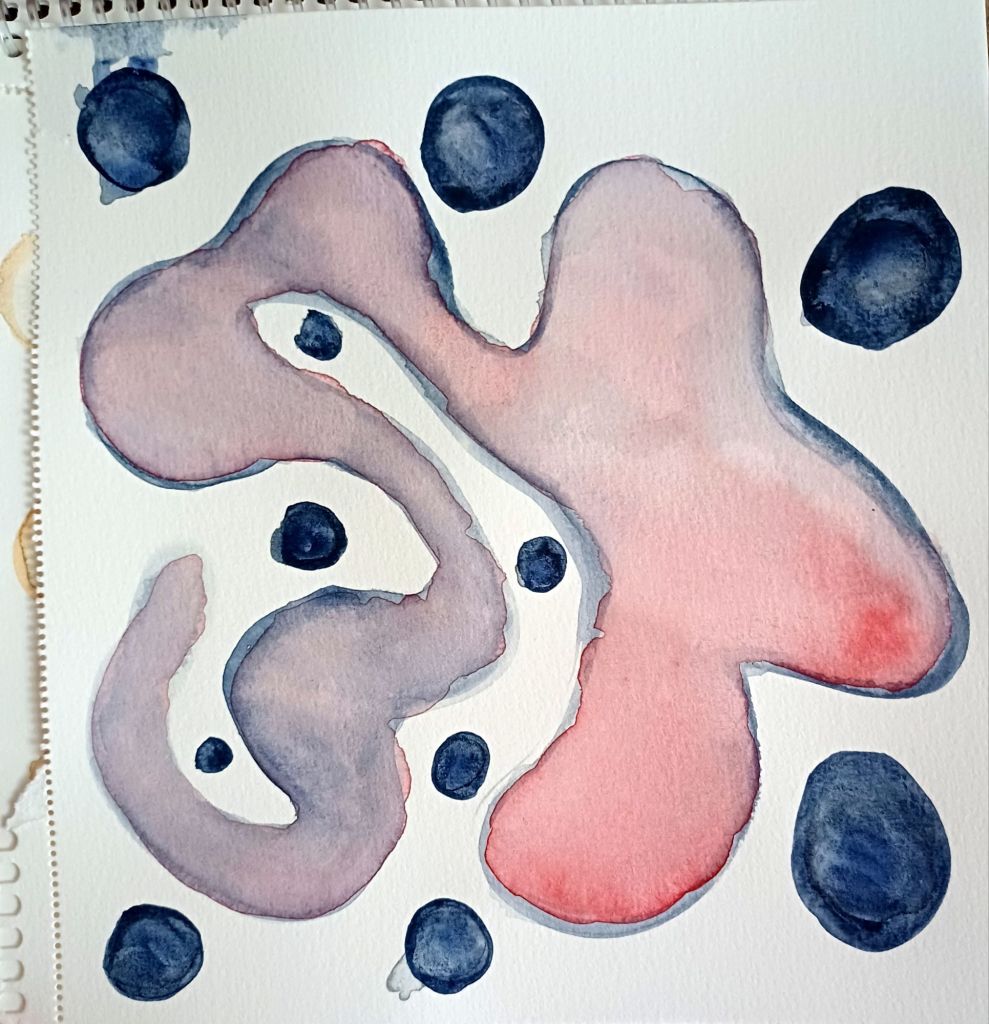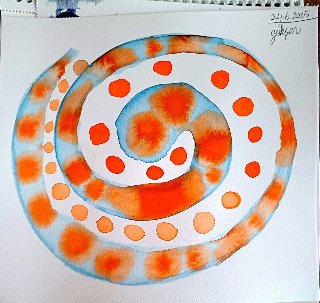 Bugün içimden geçenleri suluboya ile kağıda aktardım. Soyut suluboya çok keyifli teknikler barındırıyor. İfade edemediğim ve bilinçaltı katmanlarından gelen bazı karışık duygular için soyut anlatım çok uygun oldu.
