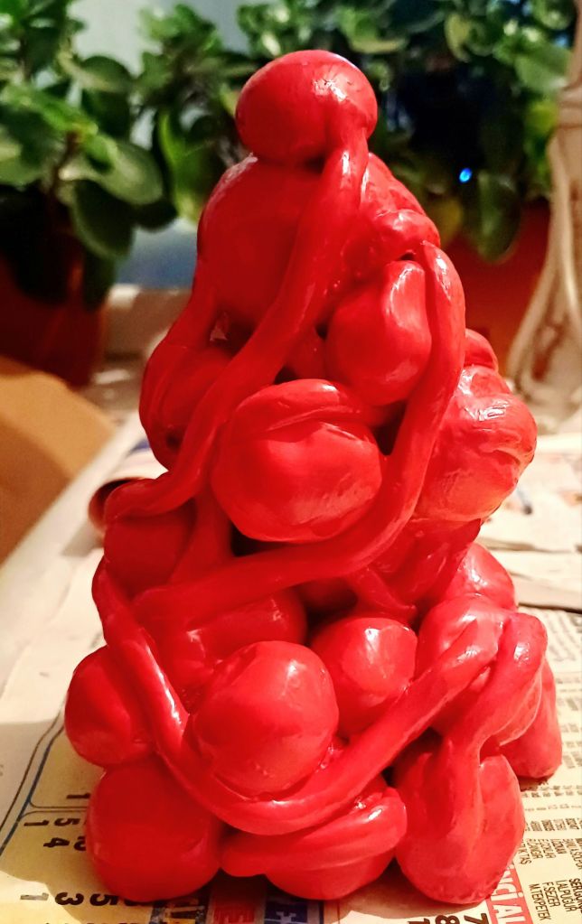 The color red carries both emotional and bodily intensity, while the organic structure can be read as a three-dimensional translation of an inner map. Offering a different relationship from every angle, the work resists a single fixed meaning and instead opens itself to multiple interpretations.